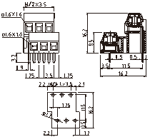 间距/位数 (MM/P):3.5/2*2-2*24 UL技术参数:B C D 额定电压/电流 ( V/A):300/10 压线范围 (AWG):30-16 IEC技术参数 额定电压 /污染等级2 (V/A):200 额定电流/线径 (A/MM²):10/1 压线范围:单芯线/多芯线 (MM²):0.14-1.5/0.14-1.0 浪涌电压类别/污染等级 Ⅲ/3 Ⅲ/2 Ⅱ/2 额定电压 (V):160 200 400 额定浪涌电压 (KV):2.5 2.5 2.5