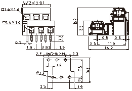 间距/位数 (MM/P):3.81/2*2-2*24 UL技术参数:B C D 额定电压/电流 ( V/A):300/10 压线范围 (AWG):30-16 IEC技术参数 额定电压 /污染等级2 (V/A):200 额定电流/线径 (A/MM²):10/1 压线范围:单芯线/多芯线 (MM²):0.14-1.5/0.14-1.0 浪涌电压类别/污染等级 Ⅲ/3 Ⅲ/2 Ⅱ/2 额定电压 (V):160 200 400 额定浪涌电压 (KV):2.5 2.5 2.5